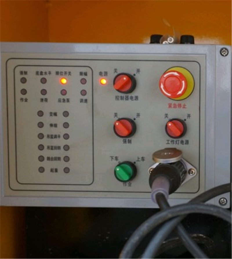 整車電器采用CAN總線**系統(tǒng),線路整齊、簡易。整車有三處操作:平臺操作,也可在地面用有線或無線操作,更方便觀察作業(yè)空間,安全可靠,工作效率高。